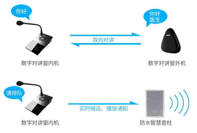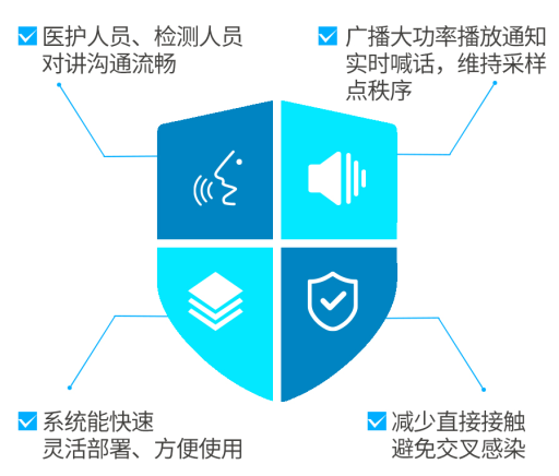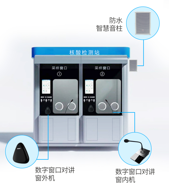 即醫護采樣人員在采樣窗口既能與被采樣人順暢溝通,又能完成喊話廣播維持艙外排隊秩序、播放通知。