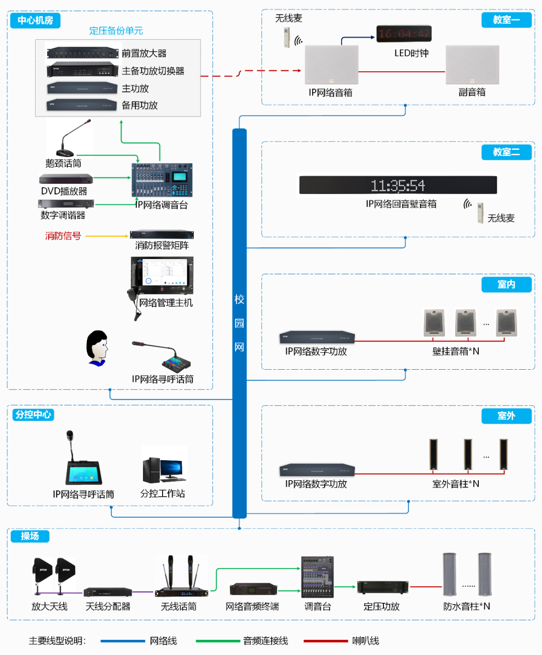 ? 整體設計實現全校范圍內統一集中控制管理,能夠全區廣播。