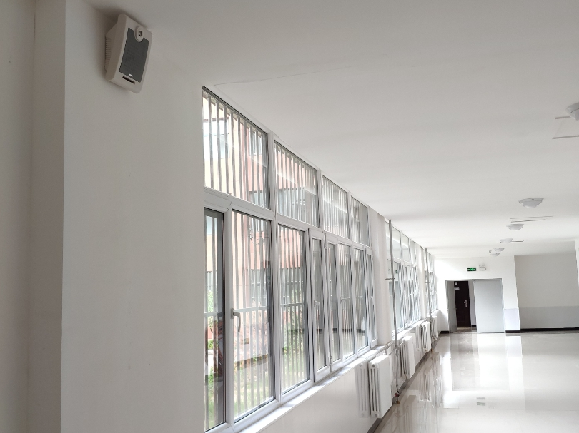 所有樓層走廊共設為一個廣播分區,主要滿足上下課打鈴和廣播通知,采用網絡功放+壁掛音箱的部署方式,如有吊頂可優先選擇天花喇叭,安裝效果更加美觀。壁掛音箱部署間隔約15~20米/只。