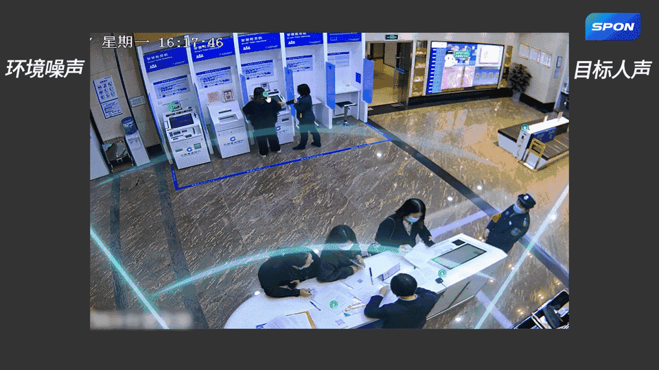 現有問題:銀行大廳作為客戶主要活動區域,具有區域廣、人多嘈雜的特點。以往音頻監控系統因技術有限,后期回放存在混響大、聽不清、多個視頻切換操作繁瑣等問題,事中、事后都很難提取有效的音頻信息。