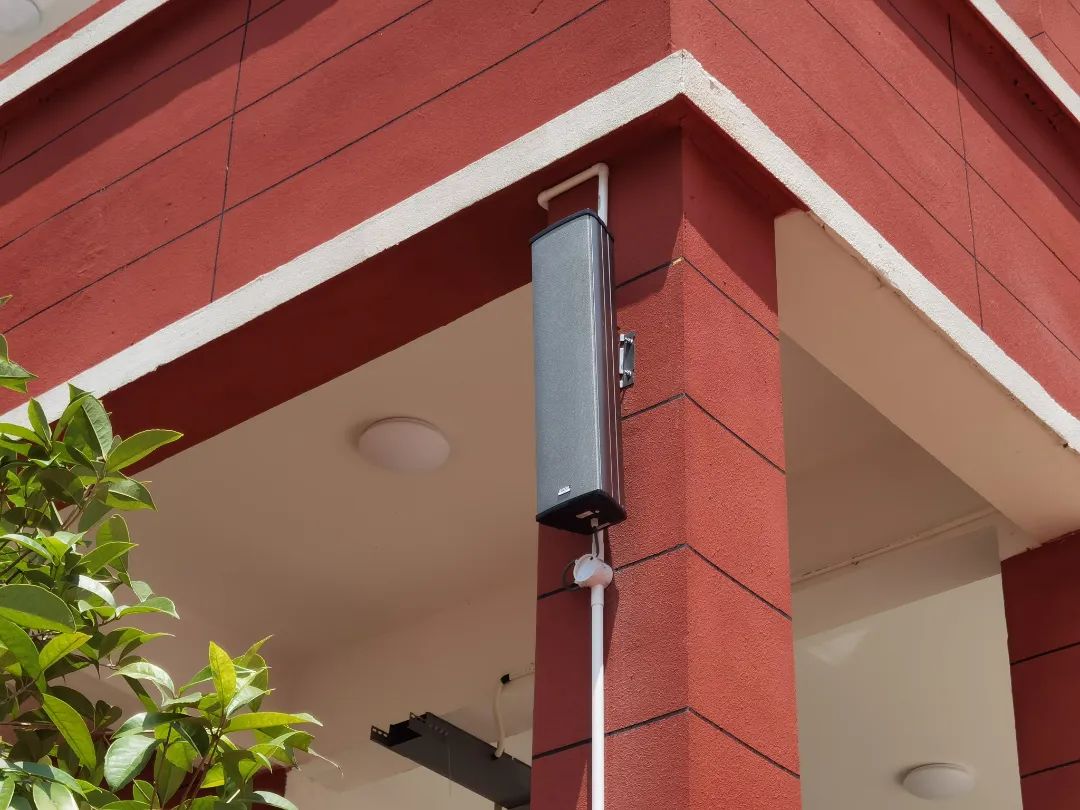 -03-室外廣播分區設計在公共區域外部署防水室外音柱,可根據功能區進行分區,播放背景音樂、安全須知、臨時廣播通知等。